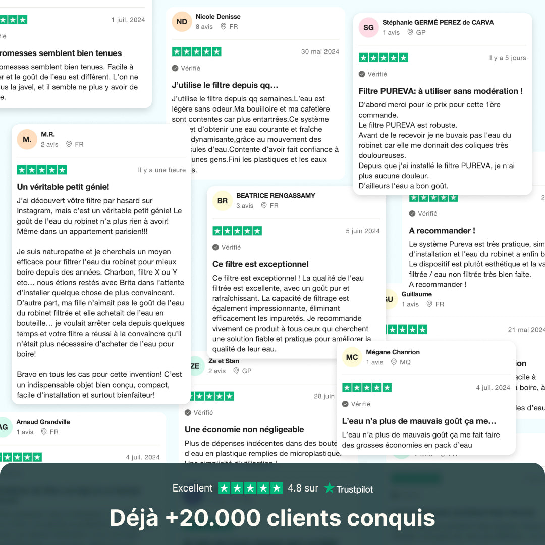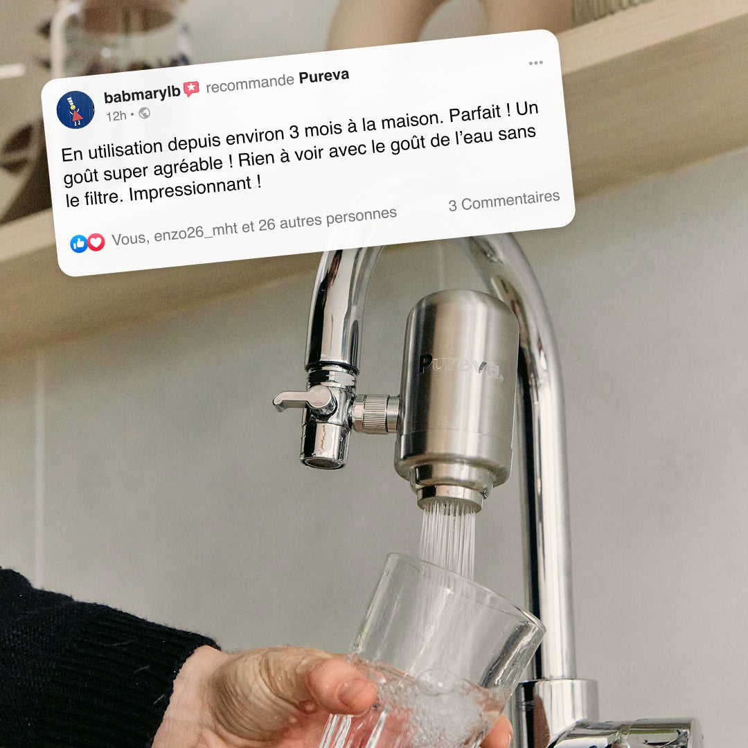 J'avais un adoucisseur compliqué à entretenir, et une carafe que je devais remplir sans arrêt. Pureva, c'est au robinet, tout le temps dispo, et sans bidouille. Et le résultat est top. Le goût est nickel, et l'eau sort claire et légère.